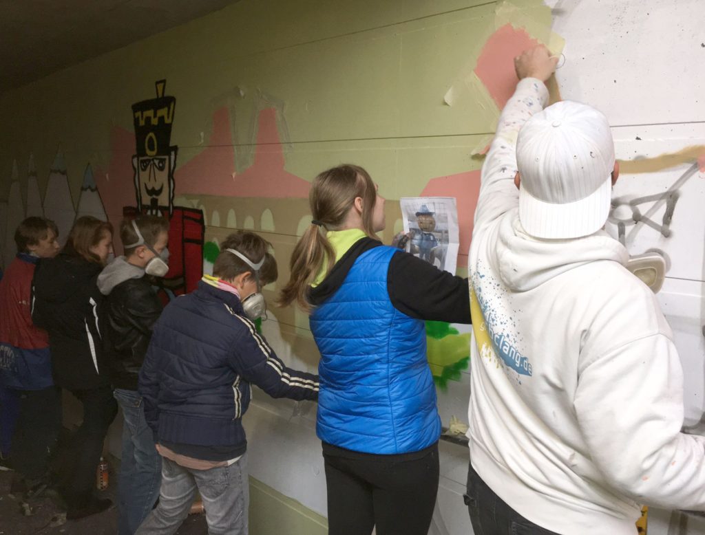 Im Rahmen des Sommerferienprogramms haben jugendliche Künstler des „KIZ-Treff“ in Zusammenarbeit mit dem Graffitidesigner Carsten Langner erneut eine Wand in der Weinböhlaer Fußgängerunterführung Sachsenstraße (DB-Kursbuchstrecke 6363 Leipzig – Dresden) gestaltet. Seit 2014 entstehen hier auf den kühlen Wänden zur Verschönerung des Fußgängertunnels in liebevoller Kleinarbeit Kunstwerke mit regionalen Motiven.