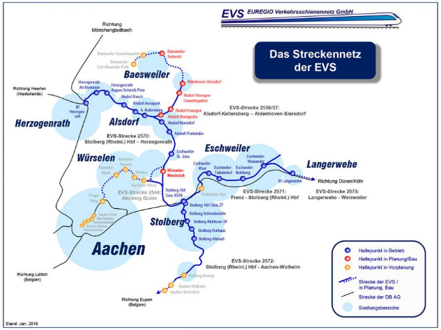 Die EVS ist ein privates Eisenbahninfrastrukturunternehmen im Bereich Stolberg/Rheinland. Derzeit sind die Strecken nur mit fahrleitungsunabhängigen Fahrzeugen befahrbar. Ausnahme sind die Bahnhöfe Stolberg Hbf und Herzogenrath, welche an der Schnittstelle zur DB AG liegen.
