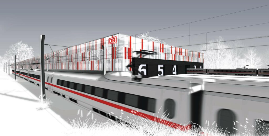 Im Norden wird die Zuführung der Züge in das ICE-Werk lediglich über die Gleise 743 und 744 abgewickelt.
